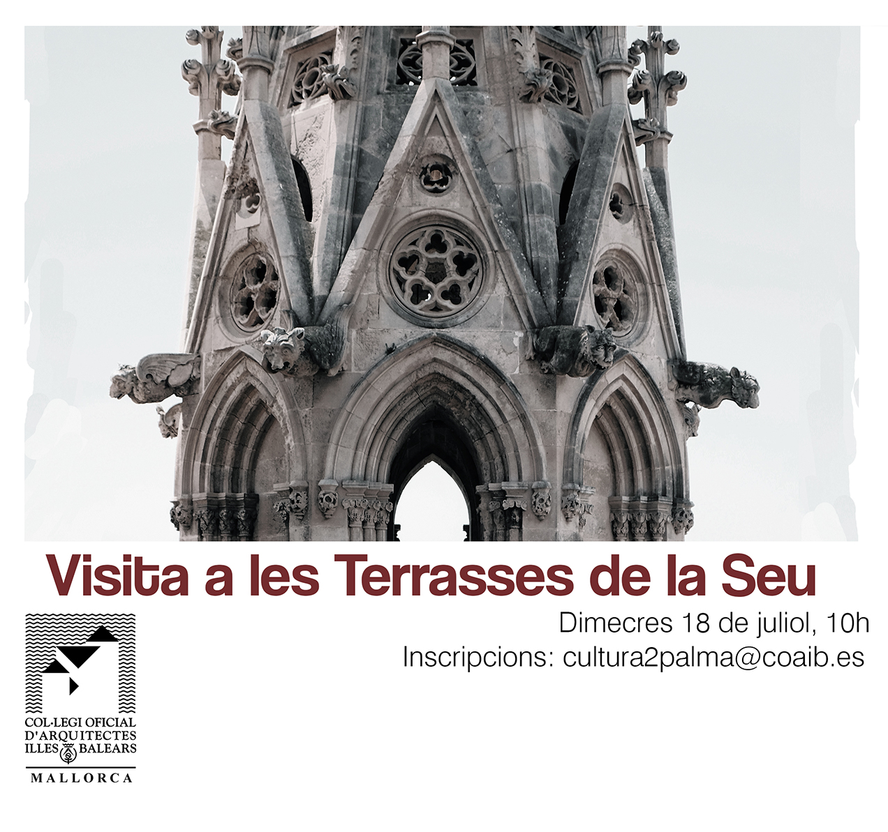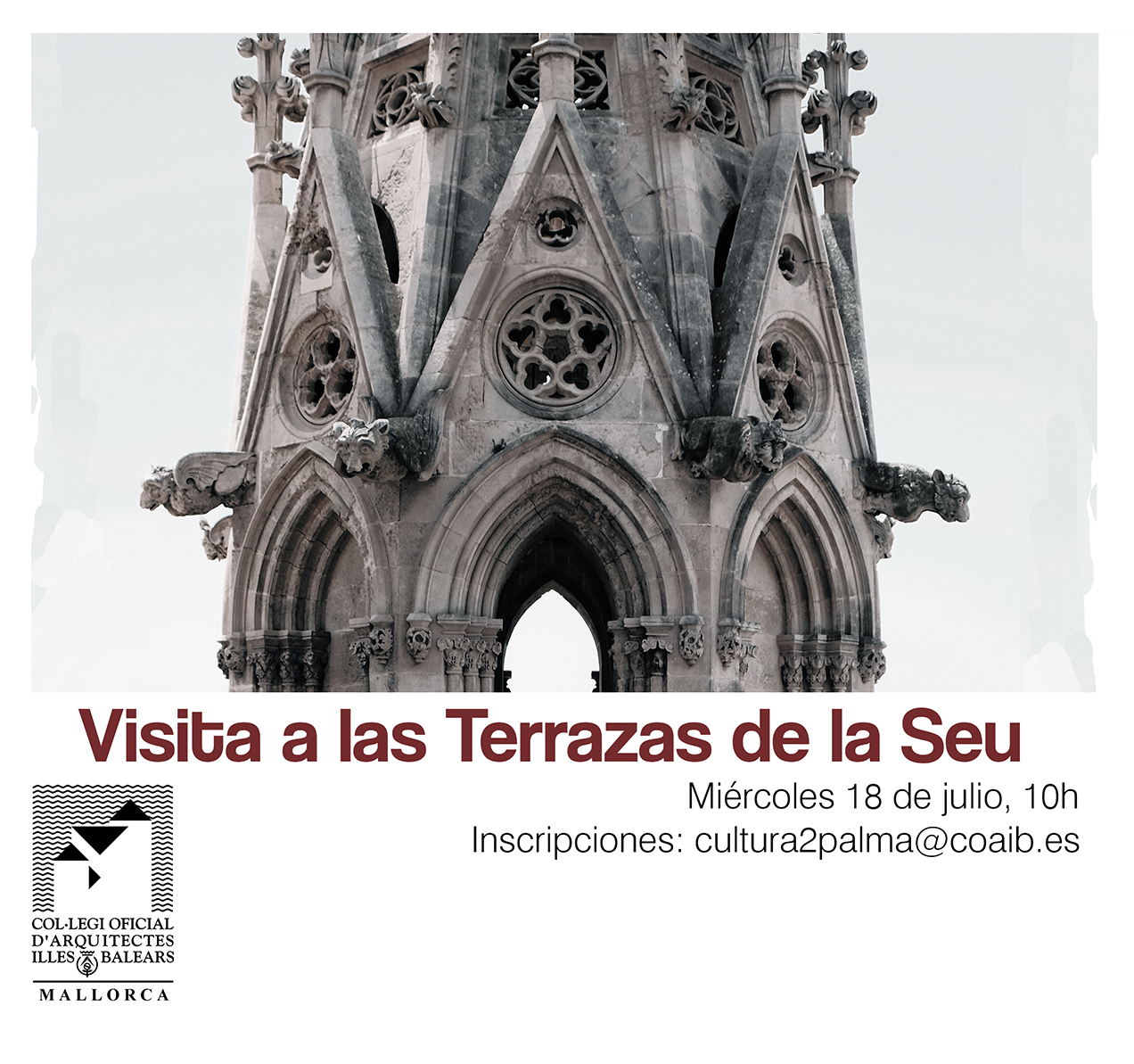 La Demarcació Mallorca del COAIB organitza, en col·laboració amb el Cabildo de la Catedral de Mallorca, una visita guiada a les terrasses de la Seu. Aquesta visita es realitzarà dimecres, 18 de juliol, a les 10 hores.