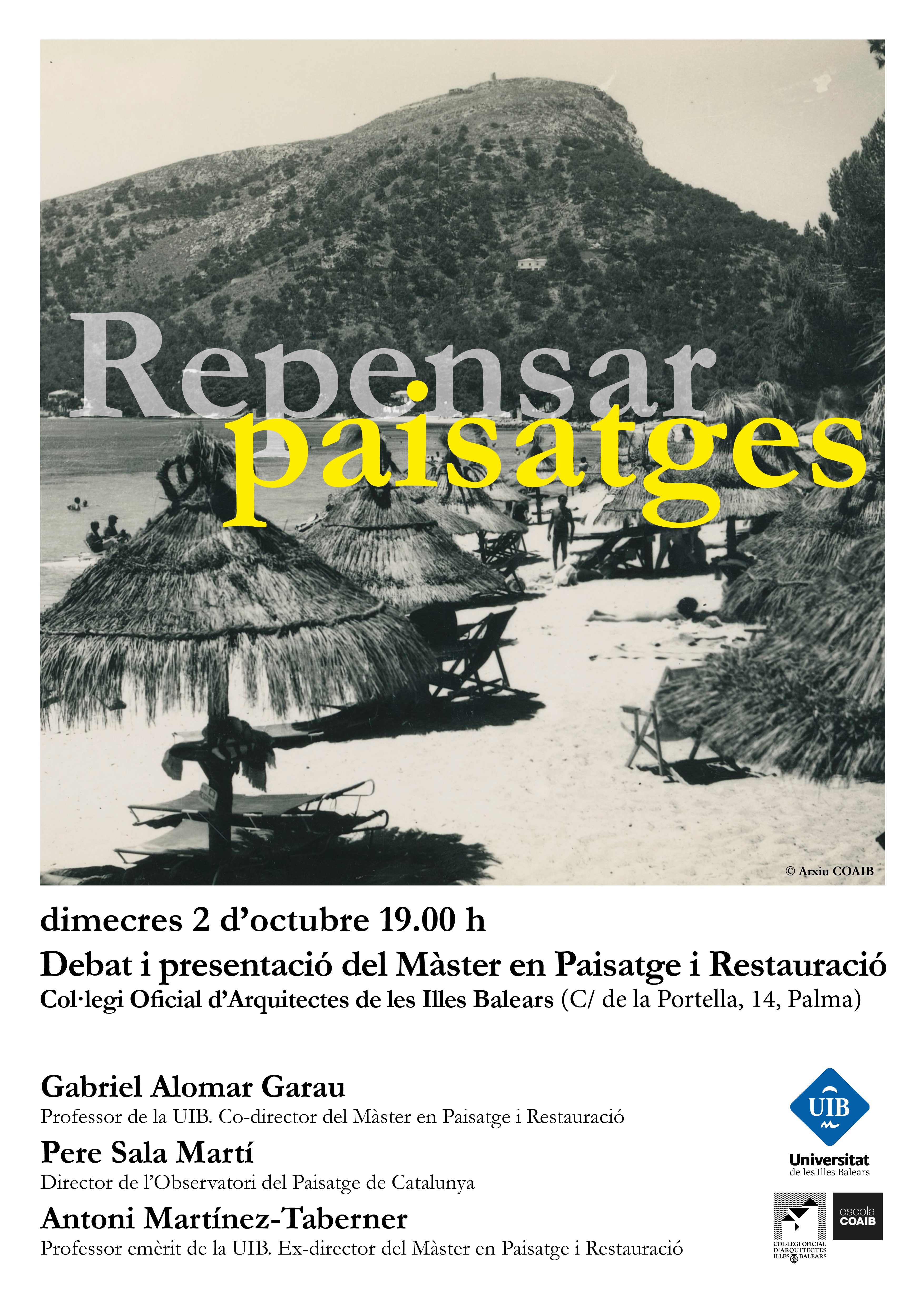 El Col·legi Oficial d’Arquitectes de les Illes Balears i la Universitat de les Illes Balears organitzen el debat “Repensar paisatges” en el marc de la presentació del Màster en Paisatge i Restauració 2019 - 2020 de la UIB.