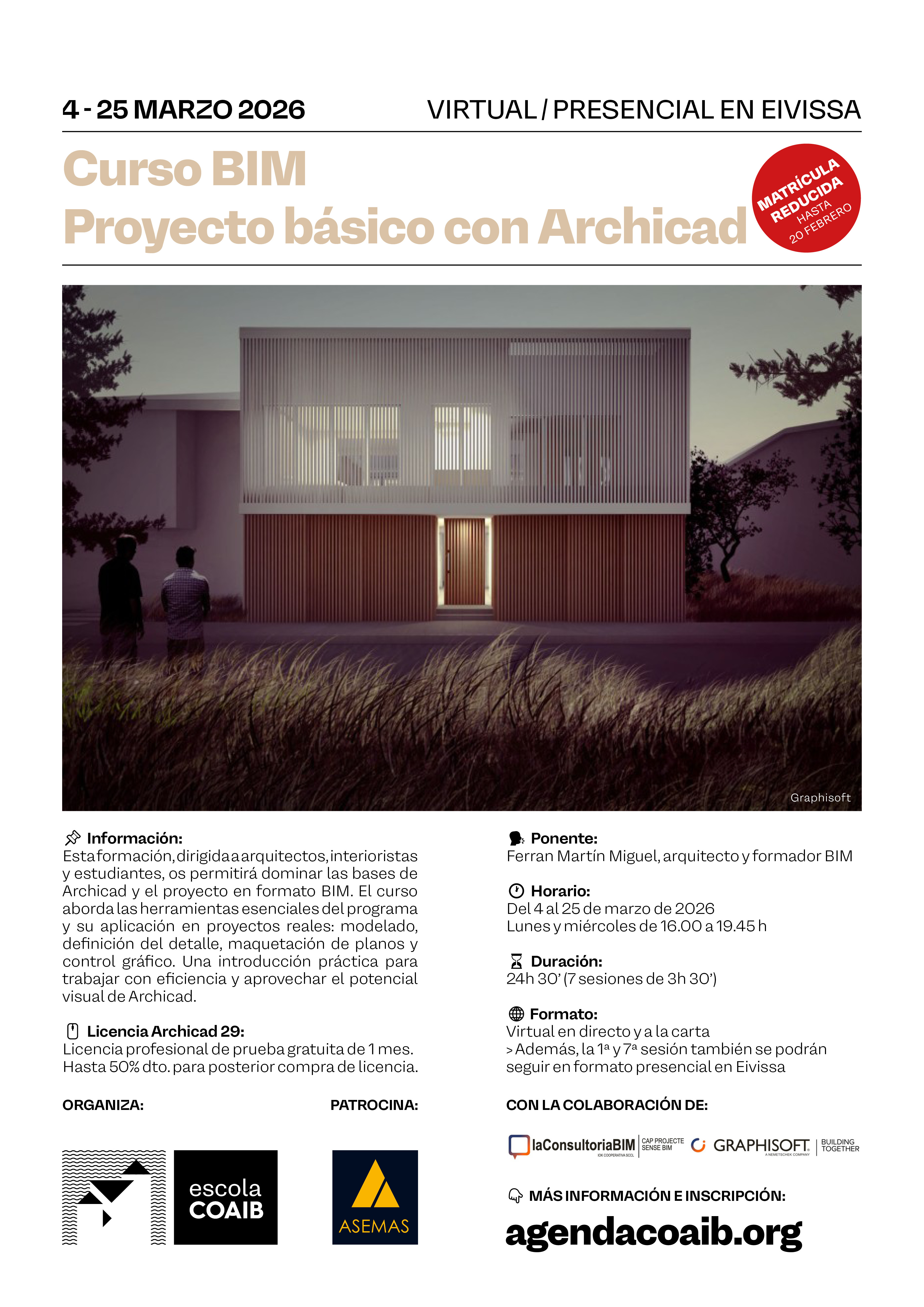 Curs BIM / Projecte bàsic amb Archicad - Del 4 al 25 de març de 2026