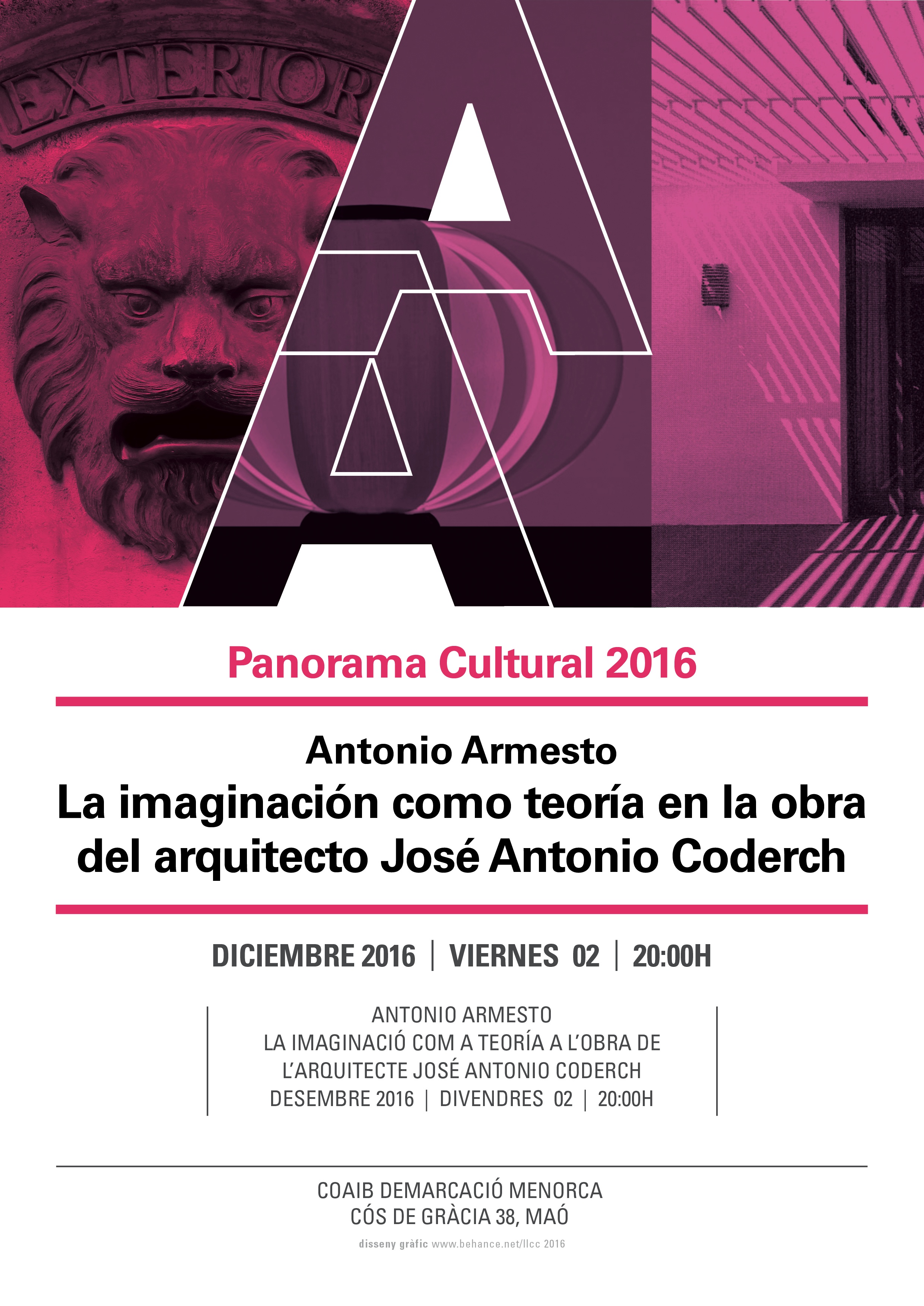 Panorama cultural 2016 "Exterior". Conferència "La imaginació com a teoria en l'obra de l'arquitecte José Antonio Coderch". Maó, 02/12/16, a les 20:00 h.