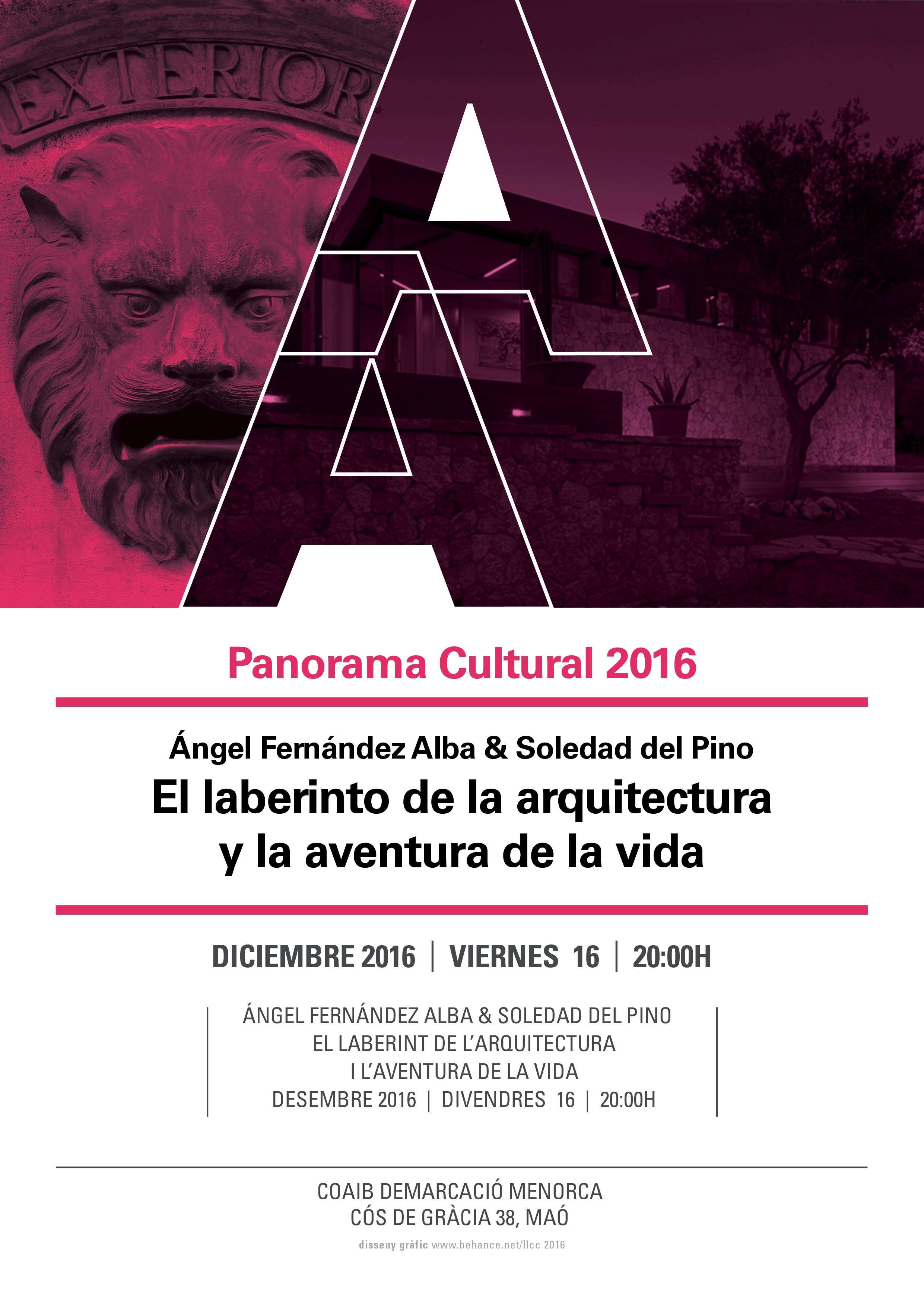 Panorama Cultura 2016 "Exterior". Conferència: Angel Fernández i Soledad del Pino: El laberint de l'arquitectura i l'aventura de la vida. Maó, 16/12/16.