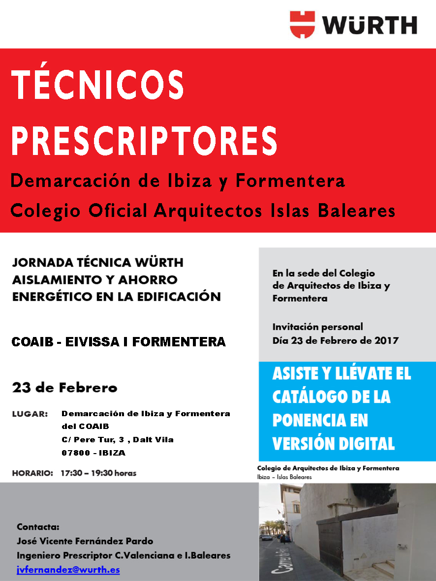 Per a més informació o confirmació d'assistència poden dirigir-se a la Secretaria de la Demarcació d'Eivissa i Formentera del COAIB. email coaibeivissa@coaib.es - www.coaib.org