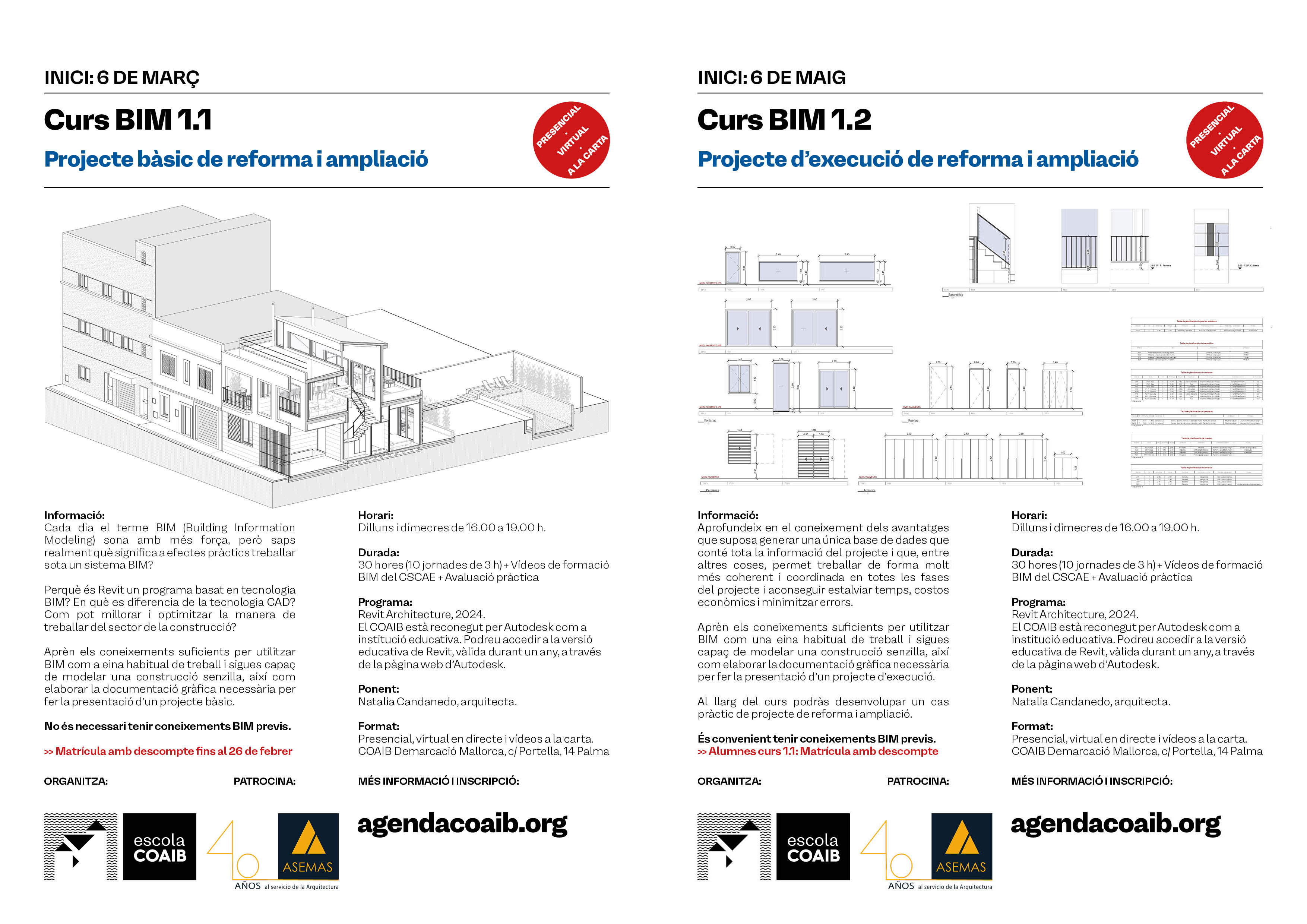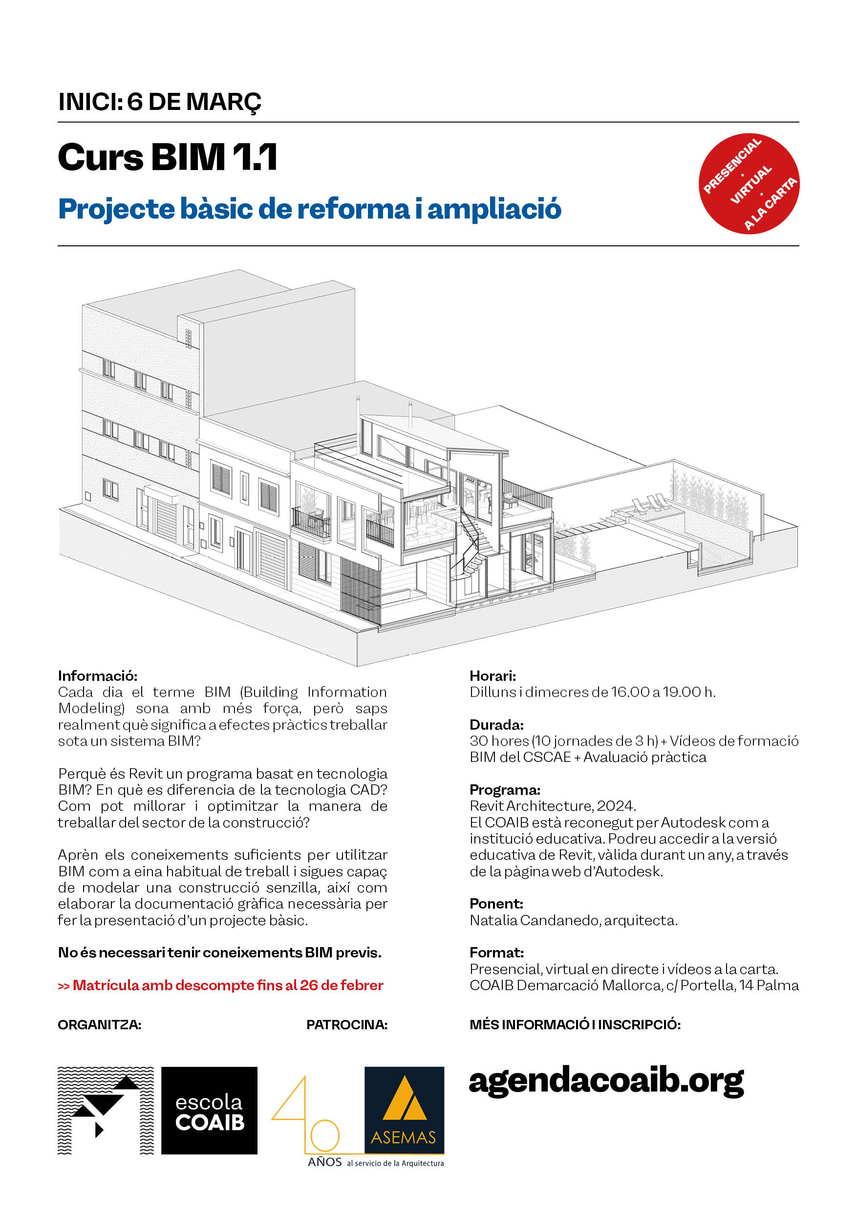 Cursos BIM (Revit) 1.1. y 1.2 Proyecto básico y de ejecución de reforma y ampliación. Inicio miércoles, 6 de marzo de 2024