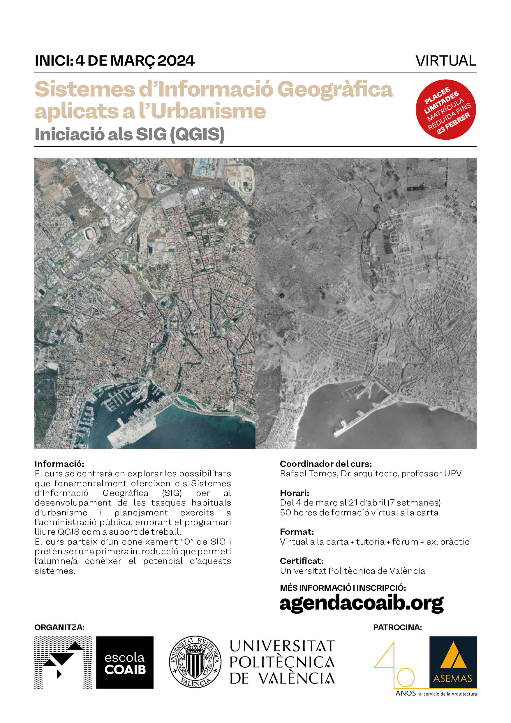 Sistemas de Información Geográfica aplicados al Urbanismo. Iniciación a los SIG (QGIS). Inicio lunes, 4 de marzo de 2024