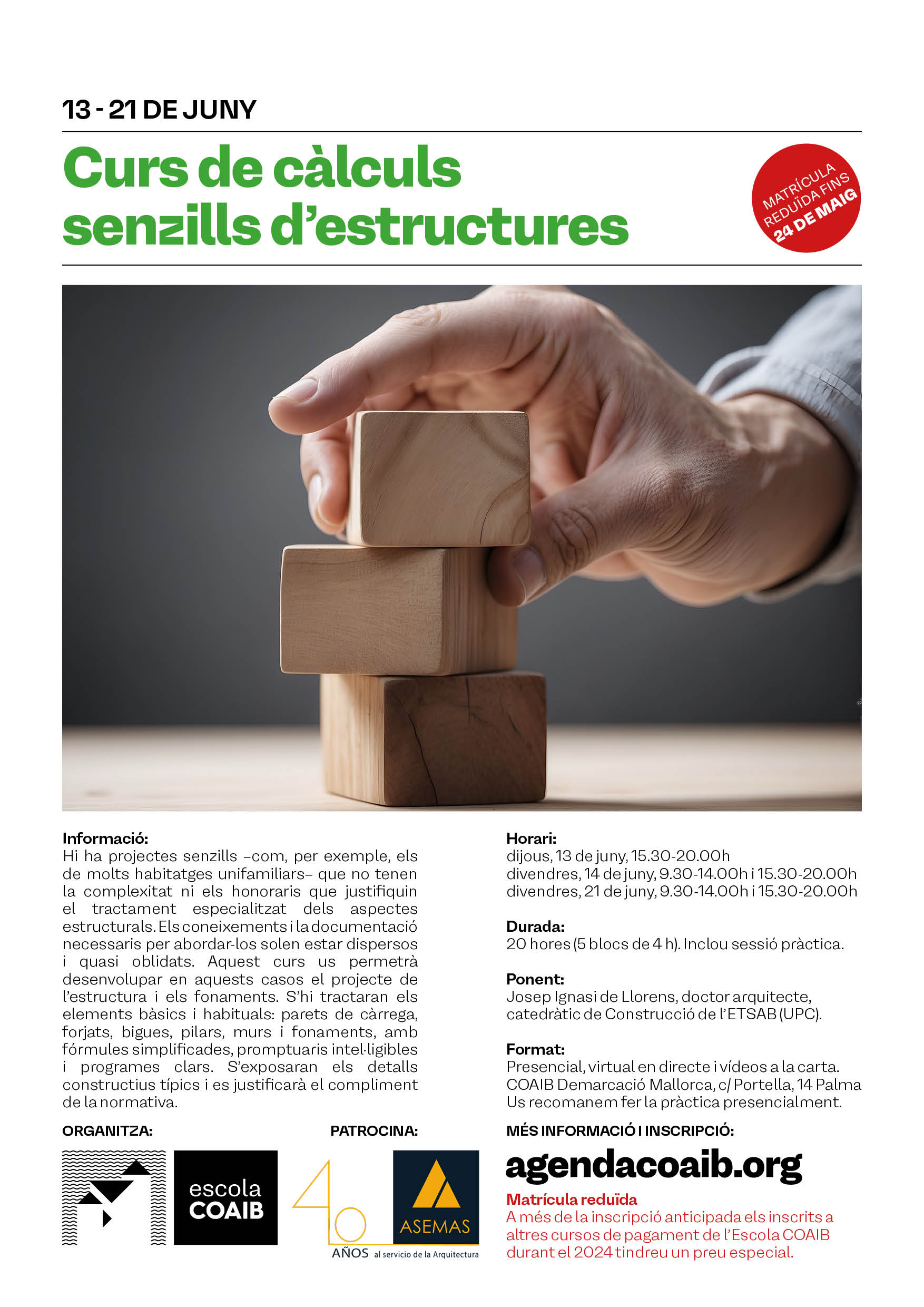 Presencial: en la sede del COAIB Mallorca (carrer Portella, 14, Palma)
