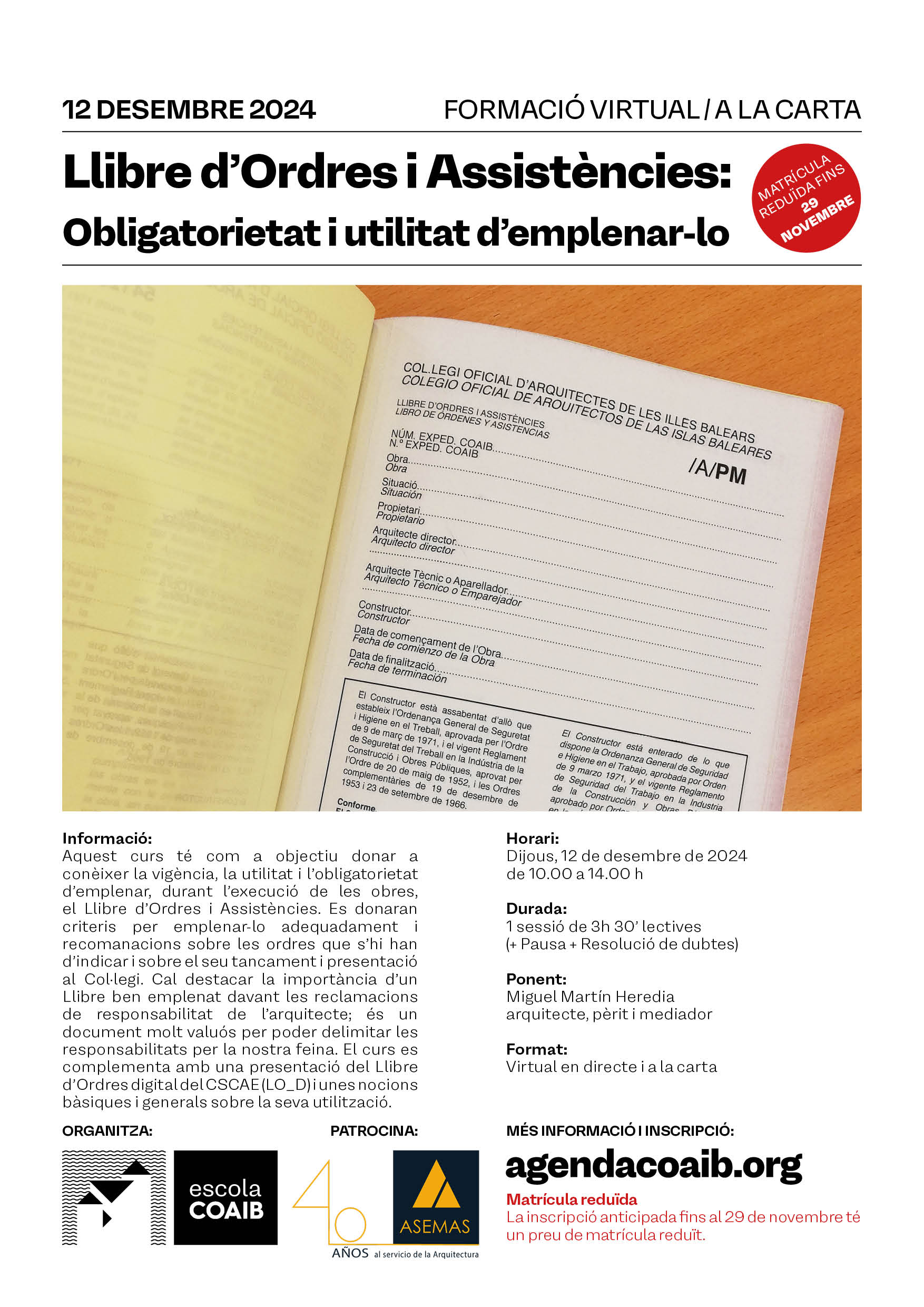 ULTIMOS DIAS CON DESCUENTO: Curso Libro de Órdenes y Asistencias. 12 de diciembre de 2024.