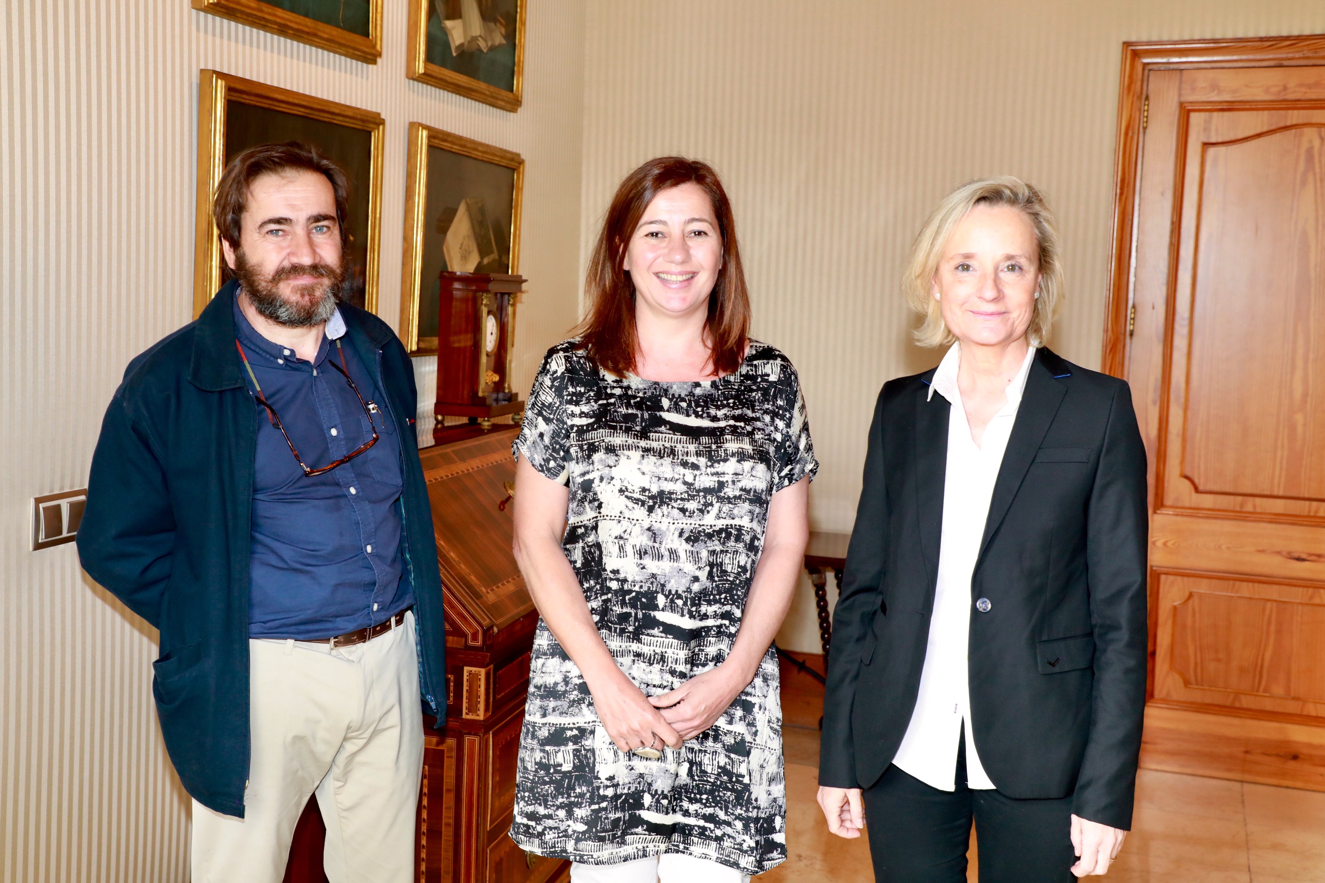 La presidenta del Govern balear, Francina Armengol, la decana y el presidente de Mallorca del Col·legi Oficial d'Arquitectes de les Illes Balears (COAIB), Marta Vall·Llossera y Nacho Salas, respectivamente, han mantenido esta mañana un encuentro para tratar los desafíos del desarrollo sostenible que se debatirán en la mesa redonda abierta al público bajo el nombre "La forma del agua. Waterarchitecture" que tendrá lugar este viernes 4 de mayo en la sede colegial.