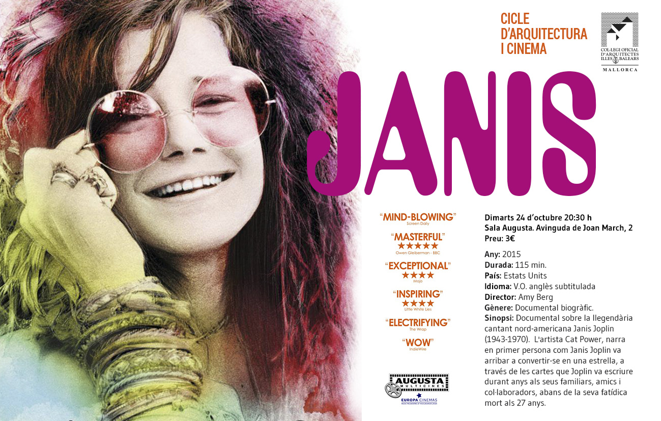 Ciclo “Arquitectura y cine”. Otoño 2017. Periodicidad mensual. Janis. Multicines Augusta (Sala 2), martes 24 de octubre de 2017.