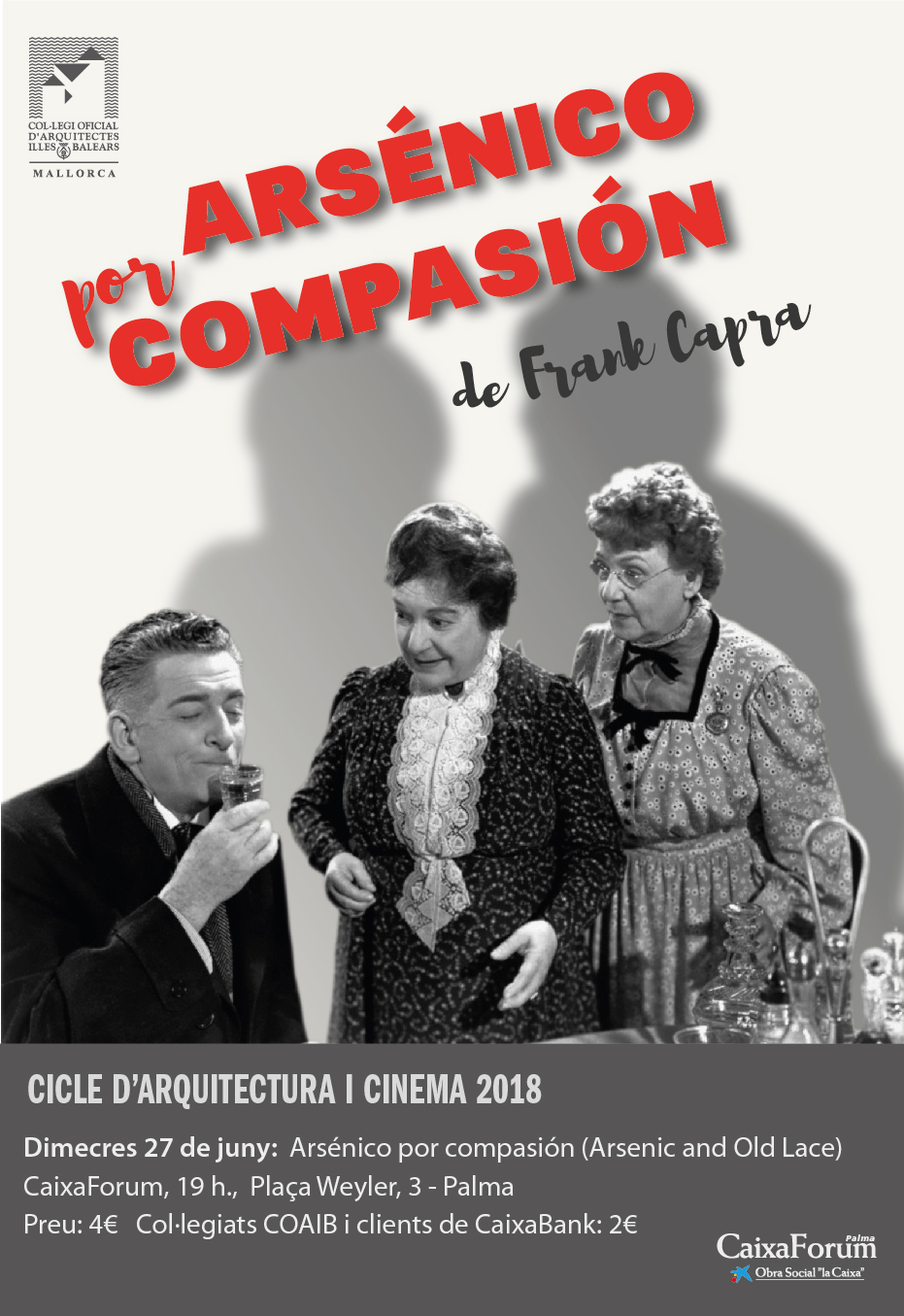 Ciclo 2018 “Ciclo de arquitectura y cine”. Periodicidad mensual. Arsénico por compasión (Arsenic and Old Lace). CaixaForum, miércoles 27 de junio de 2018.