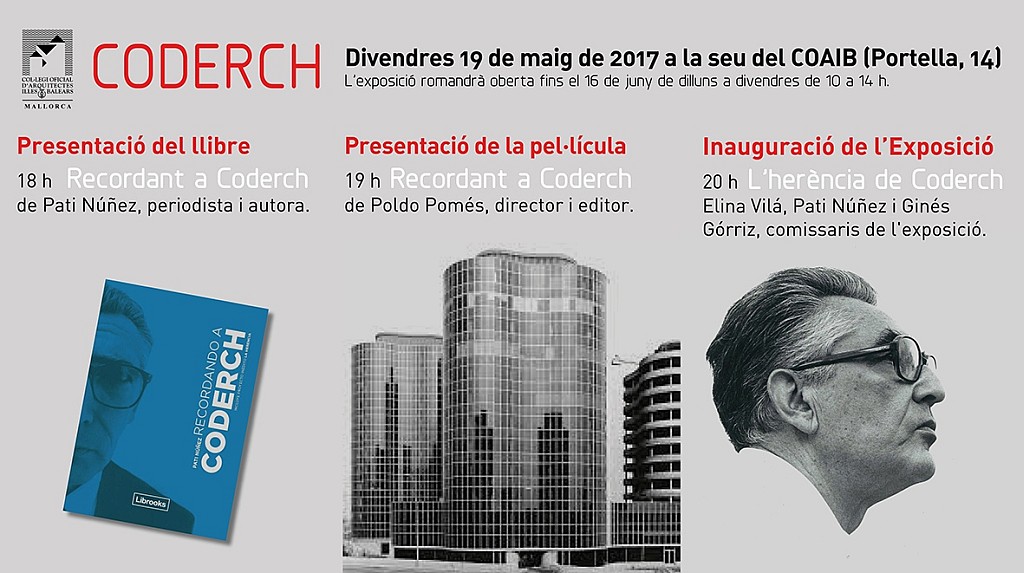 Inauguración de la exposición “La herencia de Coderch” y presentación del libro y de la película “Recordando a Coderch”. COAIB 19 de mayo a partir de las 18 h.