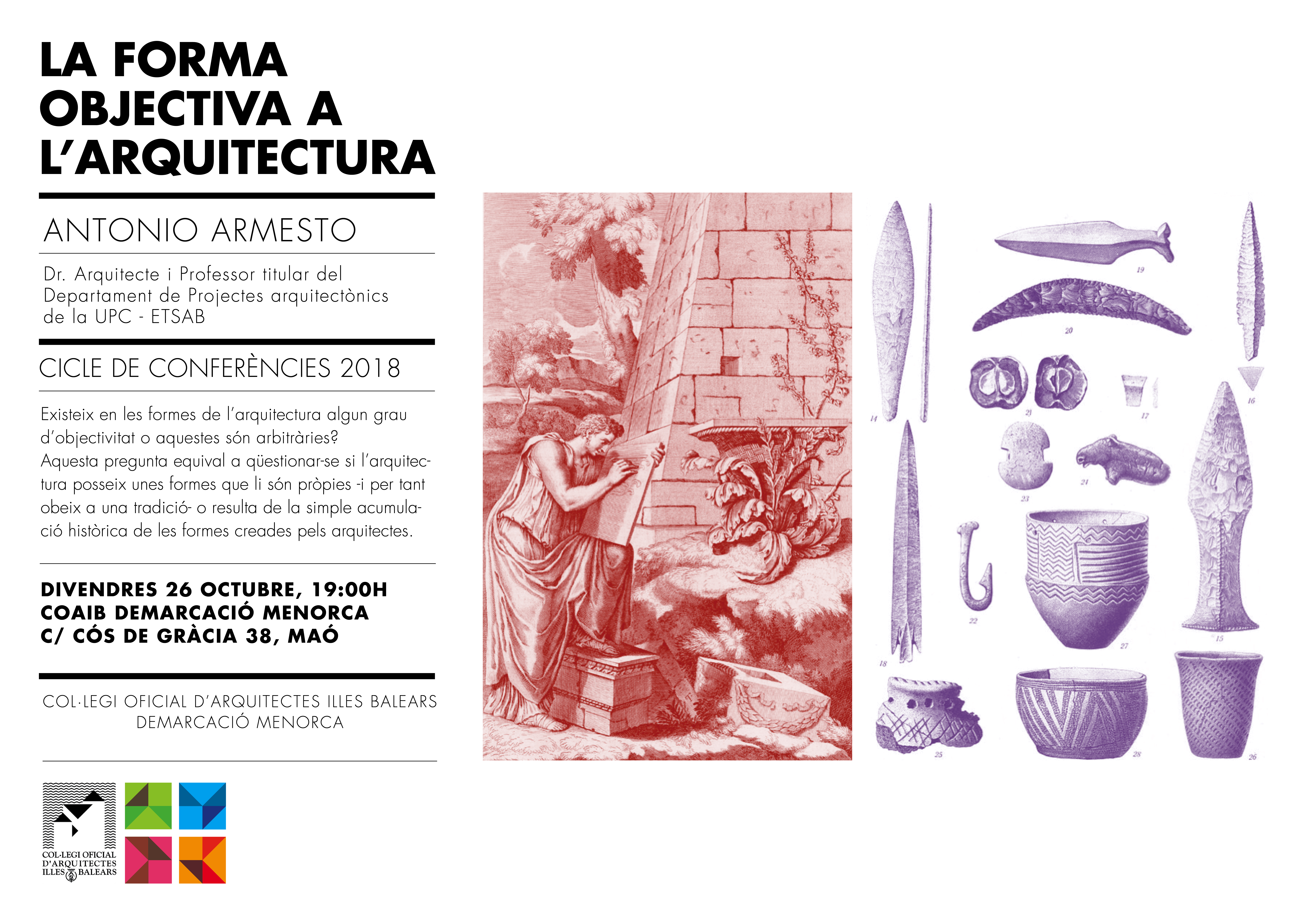 Ciclo de conferencias Demarcación Menorca 2018. La forma objectiva en la arquitectura.Antonio Armesto. Maó, 26 de octubre, a las 19 h.