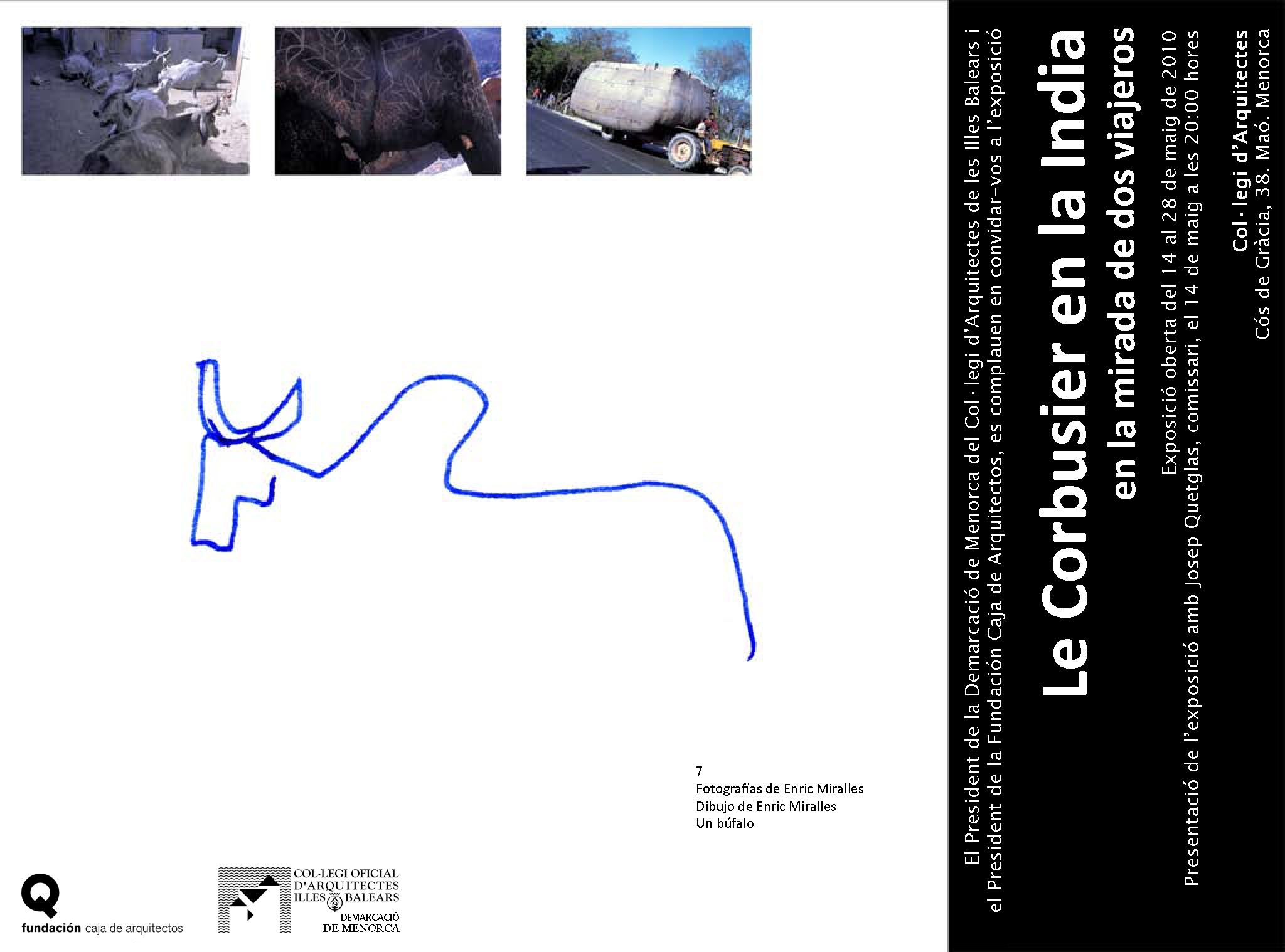 El Presidente de la Demarcación Menorca del COAIB y el Presidente de la Fundación Caja de Arquitectos se complacen en invitarles a la exposición "Le Corbusier en la India, en la mirada de dos viajeros" que permanecerá abierta del 14 al 28 de mayo de 2010 en la sede de la Demarcación (c/ Cós de Gràcia, 38 - Maó).