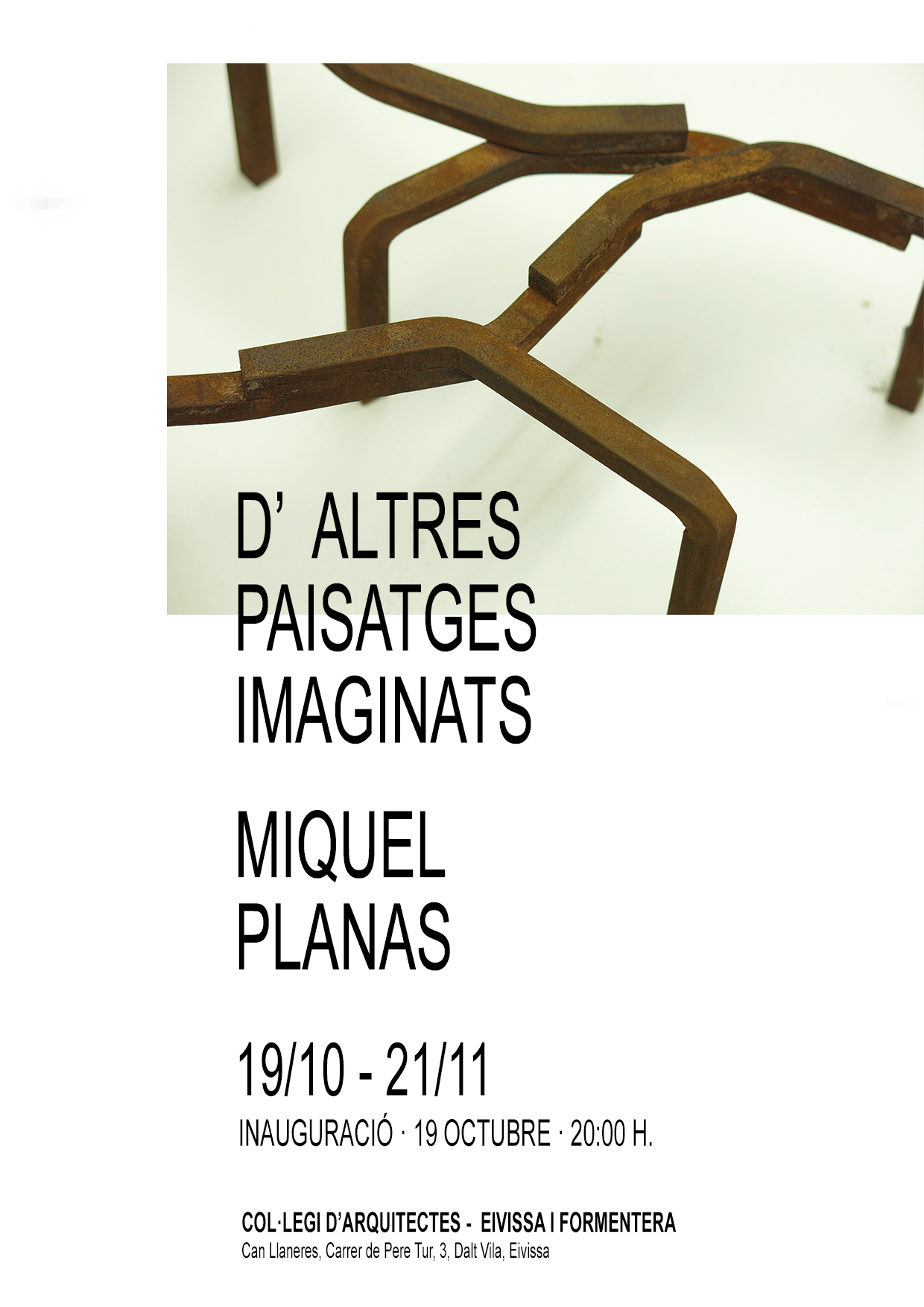 Esta muestra se inaugurará el viernes 19 de octubre, a las 20:00 horas en el espai broner de la sede de la Demarcación de Ibiza y Formentera del COAIB (Can Llaneres, Calle de Pere Tur, 3, Dalt Vila, Ibiza) y permanecerá abierta al público hasta el 21 de noviembre de 2018, en horario de lunes a viernes, de 10:00 a 14:00 horas.