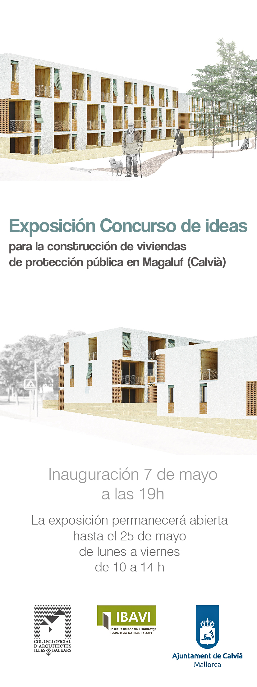 Inauguración de la exposición de las propuestas presentadas al Concurso de ideas para la construcción de viviendas de protección pública a Magaluf (Calvià). COAIB 7 de mayo a las 19.00 h.